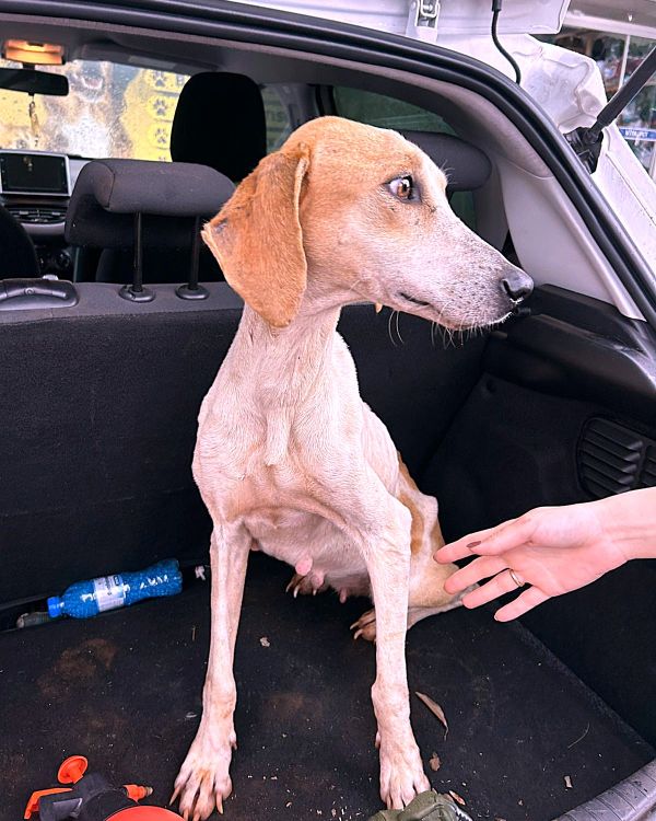 O animal apresentava extrema magreza, sinais evidentes de desnutrição e indícios claros de maus-tratos.