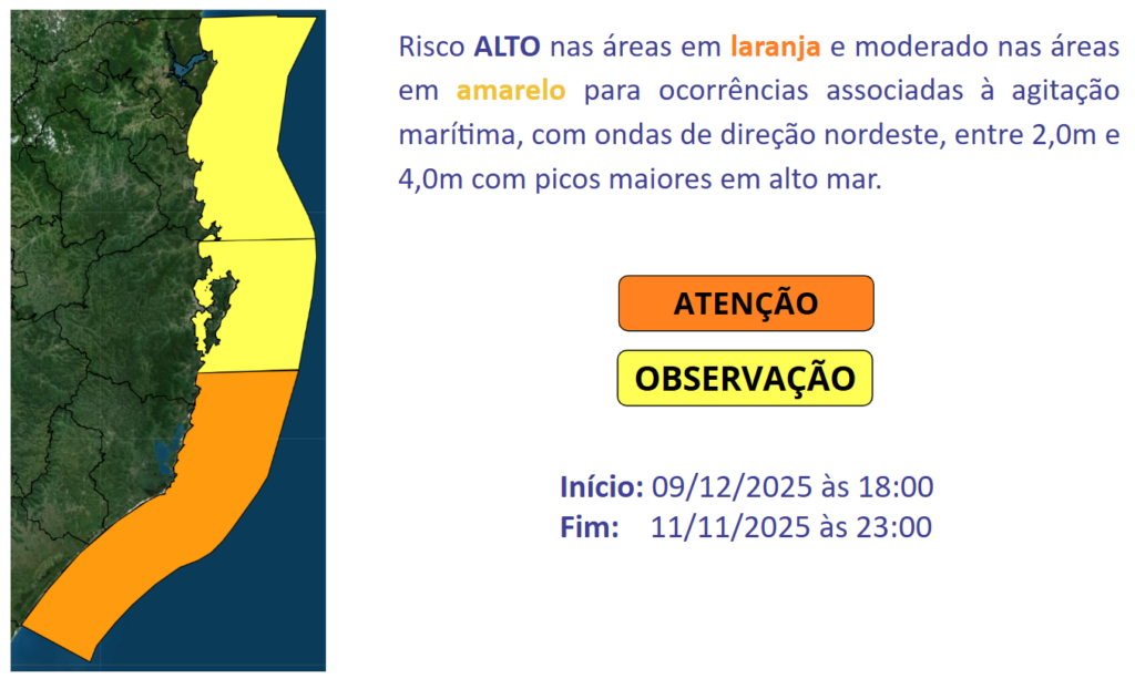 O risco é moderado a alto para ocorrências associadas à agitação marítima