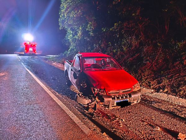 As guarnições do Corpo de Bombeiros Militar de Cunha Porã foram acionadas e encontraram o motorista do Fiat/Strada, um homem de 66 anos, consciente e orientado.