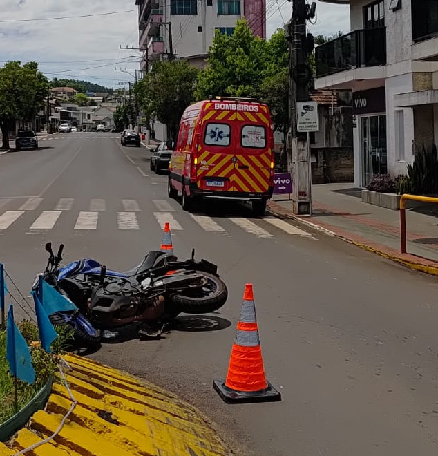 Bombeiros atendem ocorrência na Rua do Comércio; motociclista foi encaminhado ao Hospital Padre João Berthier