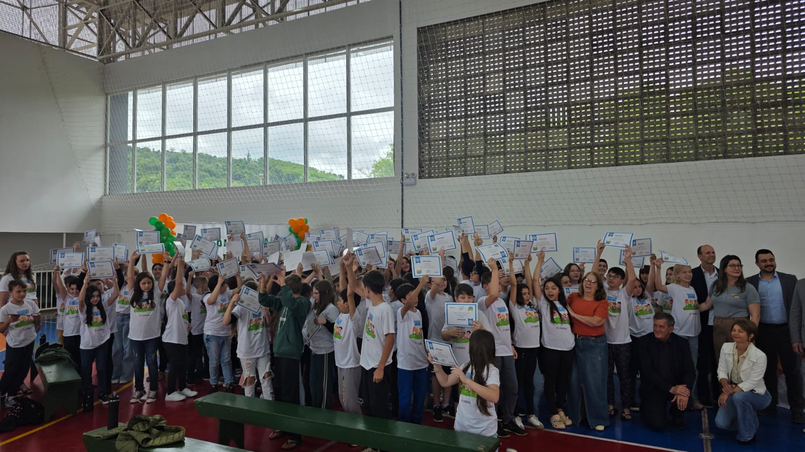 Foram certificados alunos do 4º e 5º ano da E.E.B. Cardeal Arcoverde e dos 4º anos das escolas municipais Professor Mário Xavier dos Santos (Linha São João), Padre Jorge Annecken (Bela Vista) e Padre Nicolau Gouverneur (Pratas).