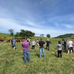 Durante a visita, os produtores conheceram o trabalho desenvolvido pela família Orsolim, que mantém a URT de criação de bezerros com animais da raça Braford. O sistema prevê a venda de bezerros 30 dias após a desmama, com peso médio de 250 quilos. Mesmo em fase de implantação, a propriedade registrou média de 655 quilos de terneiros por hectare, resultado superior à média nacional de 220 quilos por hectare.