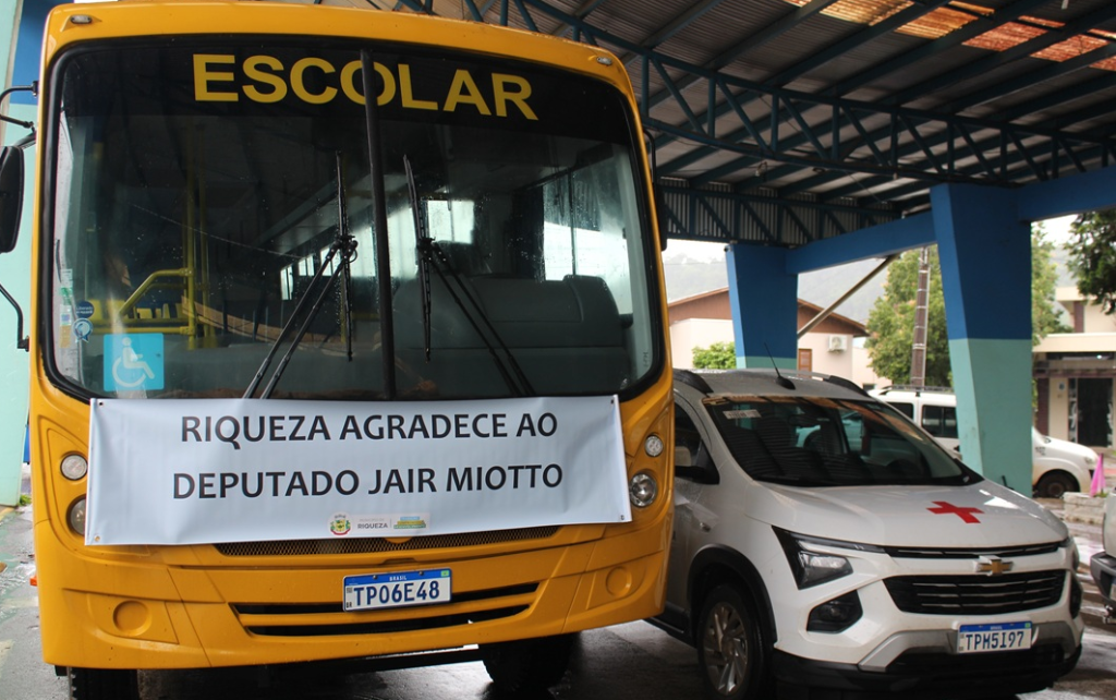 Na sexta-feira, 17 de outubro, o Deputado Estadual Jair Miotto esteve na sede da Prefeitura Municipal de Riqueza (SC), acompanhado de sua equipe de assessores, para realizar a entrega de um ônibus escolar e de um veículo Spin destinado à área da saúde. O ato marcou um momento importante para o município, que passa a contar com mais recursos para atender melhor sua população.