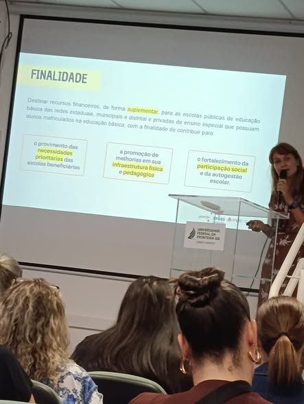 A atividade teve como objetivo oferecer assistência técnica aos municípios e às escolas para a execução das ações do programa. Durante a formação foram abordados prazos e mudanças nas normativas de prestação de contas, finalidade e critérios de atendimento do PDDE, criação de Unidades Executoras (UEx), entidades mantenedoras e consórcios escolares, além do cálculo e da execução do PDDE Básico.
