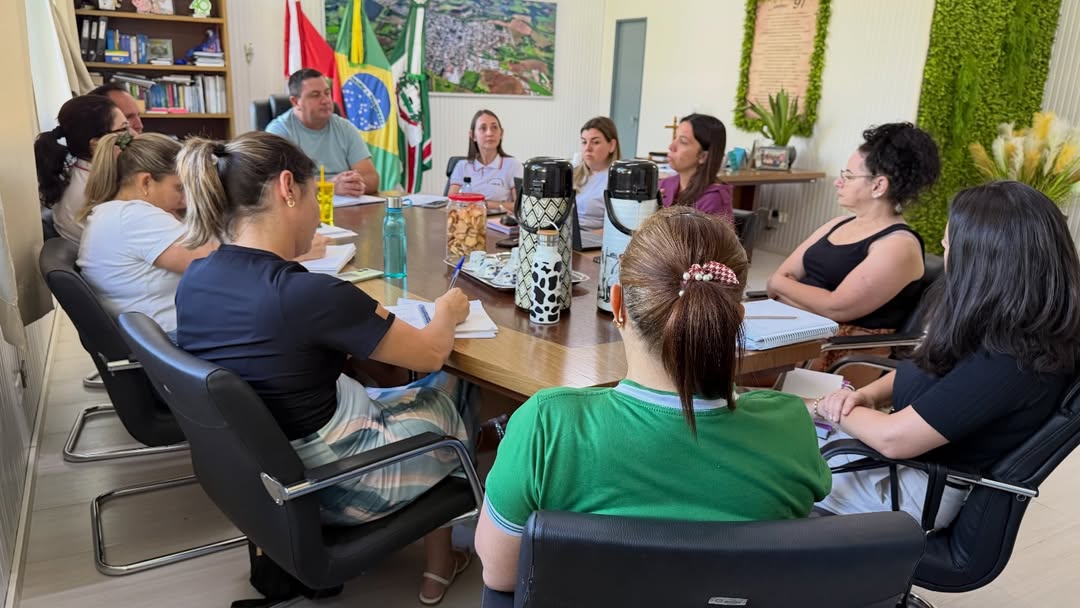 Na manhã desta quinta-feira, 18 de dezembro de 2025, o prefeito municipal Éder Picoli, o vice-prefeito Leonardo Gallon, a secretária municipal de Educação, a diretora de Educação, gestoras das unidades escolares e a equipe de assessoria participaram de uma reunião para avaliar as ações desenvolvidas ao longo do ano de 2025 e alinhar estratégias para o ano letivo de 2026.