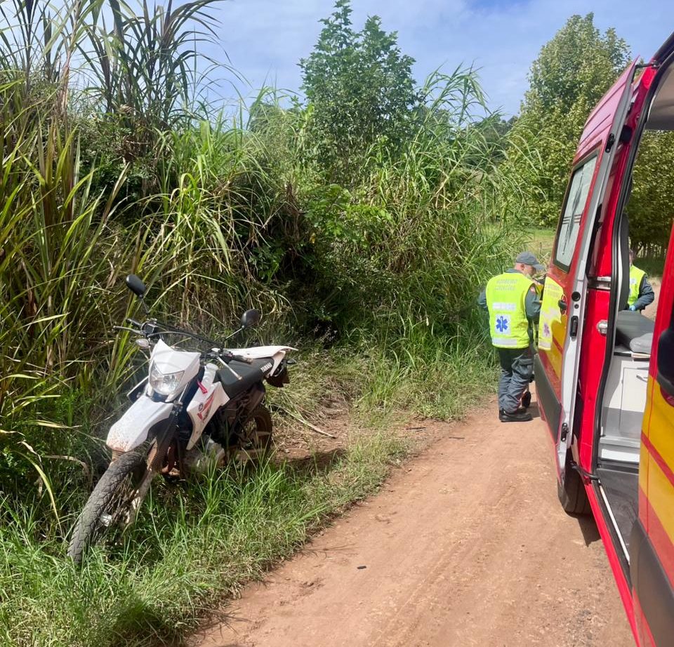 No local, os socorristas encontraram o condutor da moto, um jovem de 19 anos, caído em via pública. Ele estava consciente e orientado, porém apresentava uma fratura exposta de tíbia e fíbula na perna esquerda.