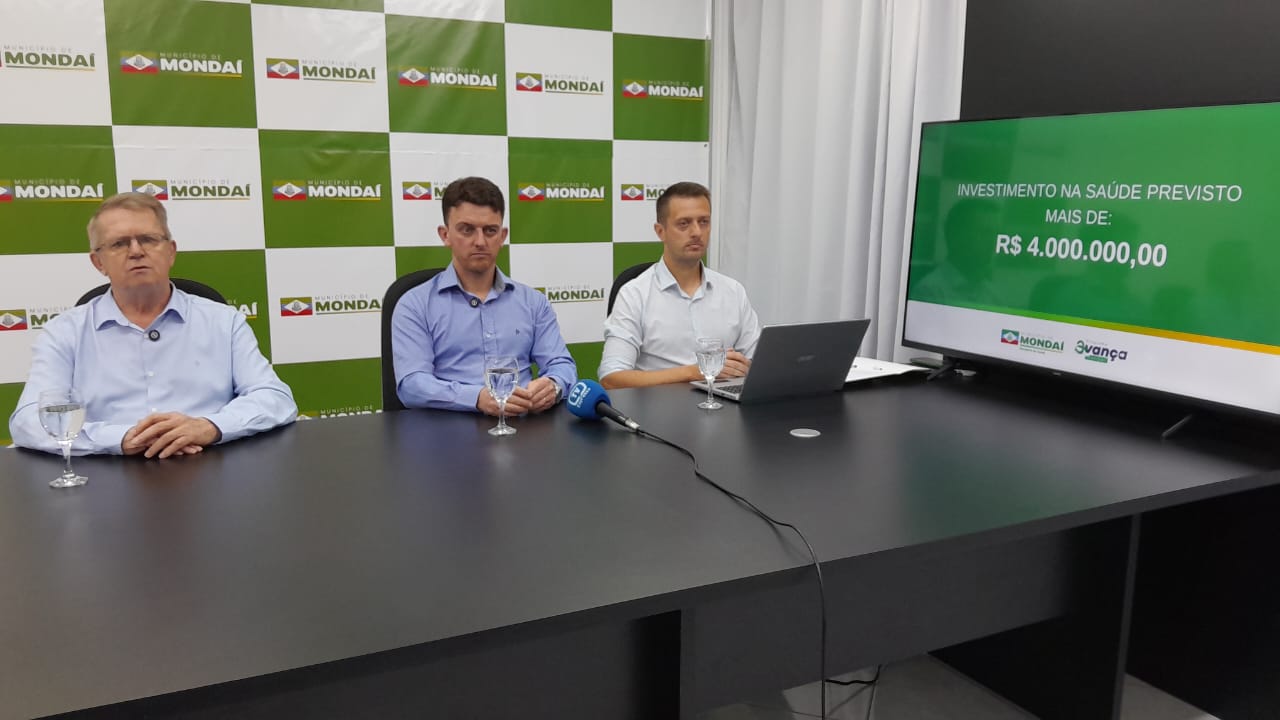 O município de Mondaí realizou na manhã desta terça-feira, 09 de setembro, uma coletiva de imprensa para apresentar dados do programa Avança Mondaí na área da saúde. A apresentação contou com a participação do prefeito Elizandro Mainardi, do vice-prefeito Guinter Dreher e do secretário de Saúde, Jullian Ludke.