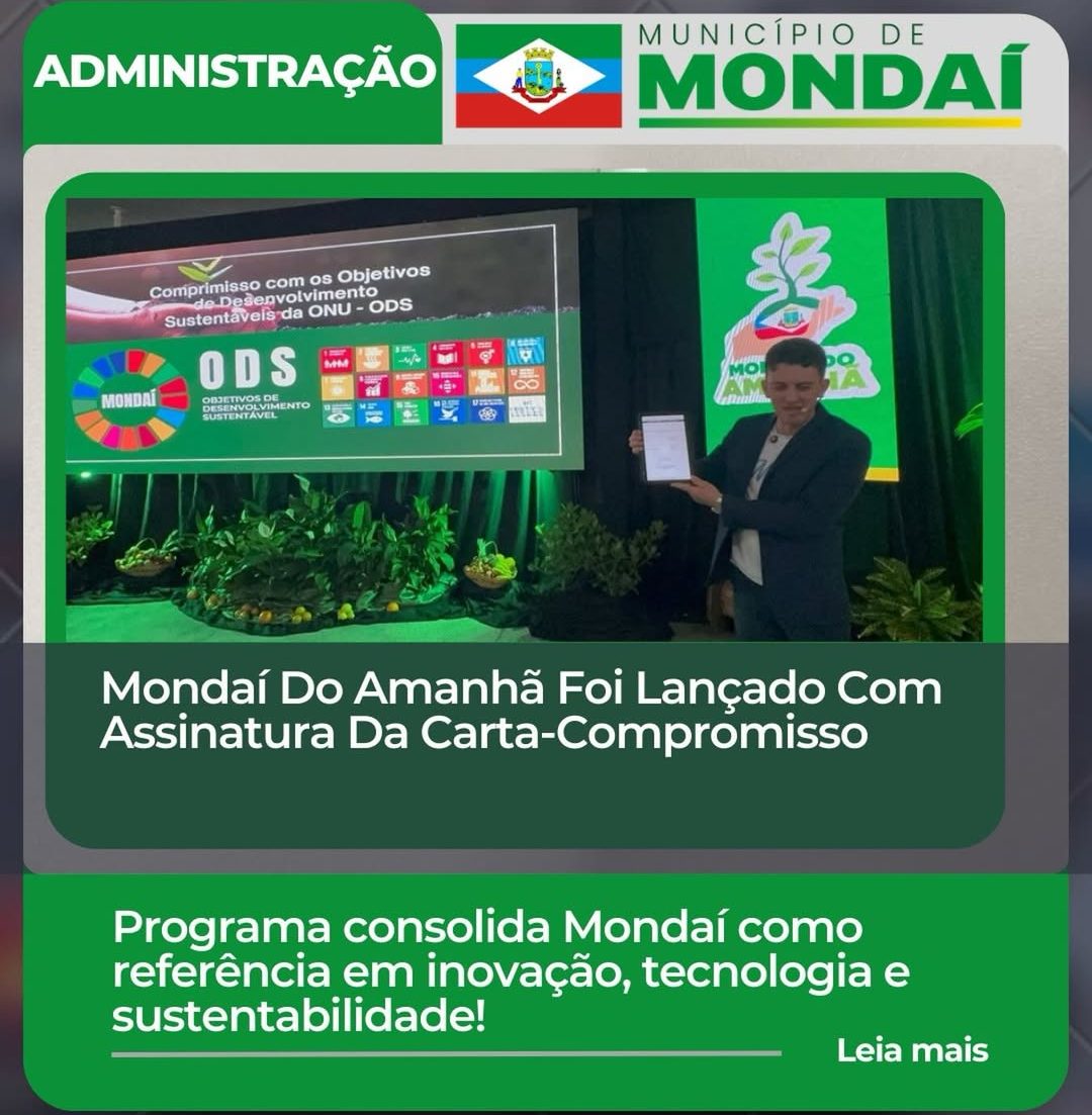 O prefeito de Mondaí, Elizandro Mainardi, assinou a Carta-Compromisso durante o lançamento oficial do programa Mondaí do Amanhã, considerado o maior programa de inovação, tecnologia e sustentabilidade já implantado no município. A iniciativa marca um novo momento na administração pública, alinhando Mondaí ao conceito de cidades inteligentes e ao desenvolvimento sustentável.