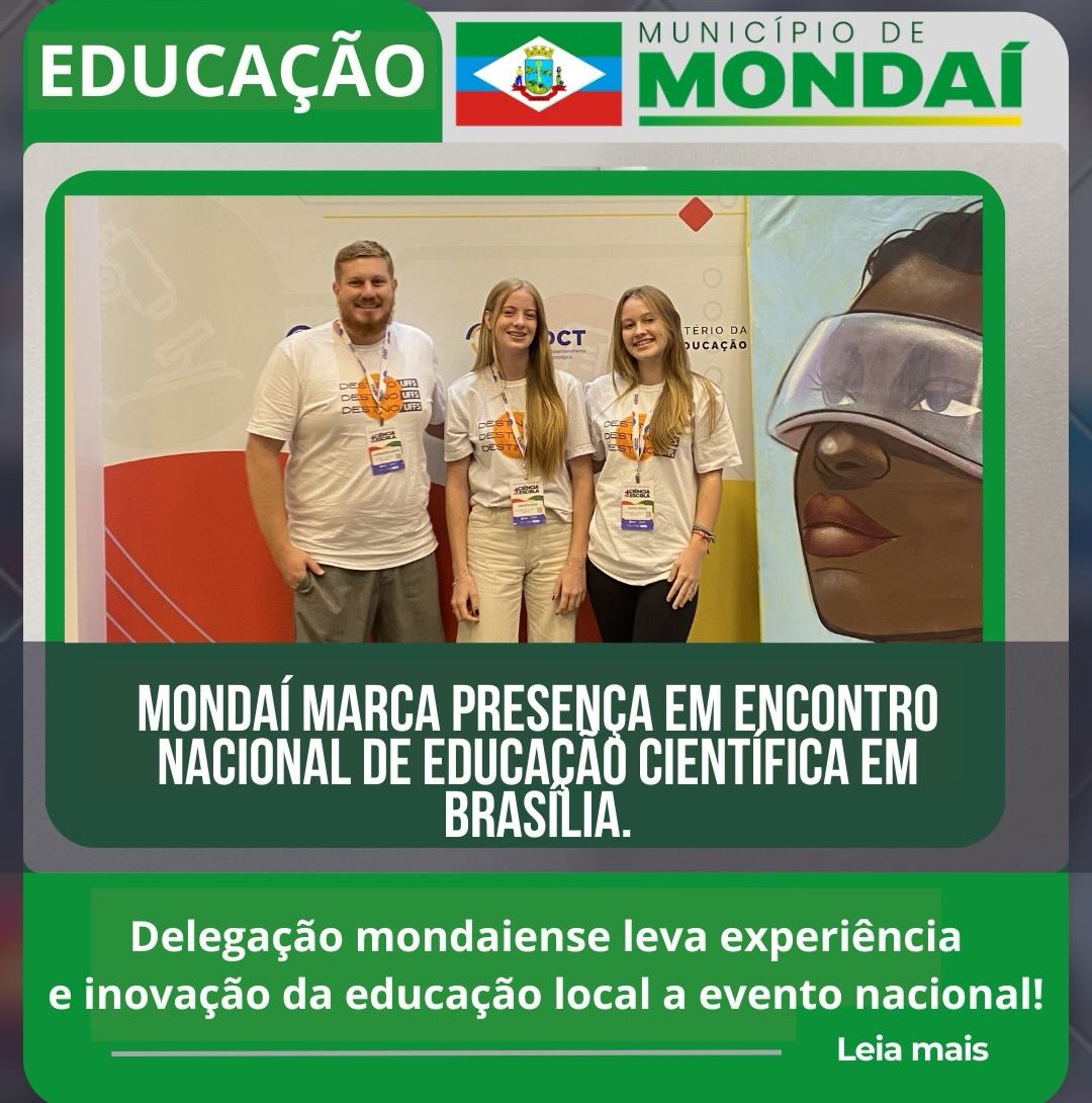 O prefeito Elizandro Mainardi também ressaltou o compromisso da gestão com a educação: “Ficamos muito felizes em ver Mondaí sendo representada em um evento de nível nacional. Isso mostra que estamos no caminho certo, investindo na educação, valorizando nossos profissionais e incentivando nossos alunos a irem cada vez mais longe.”