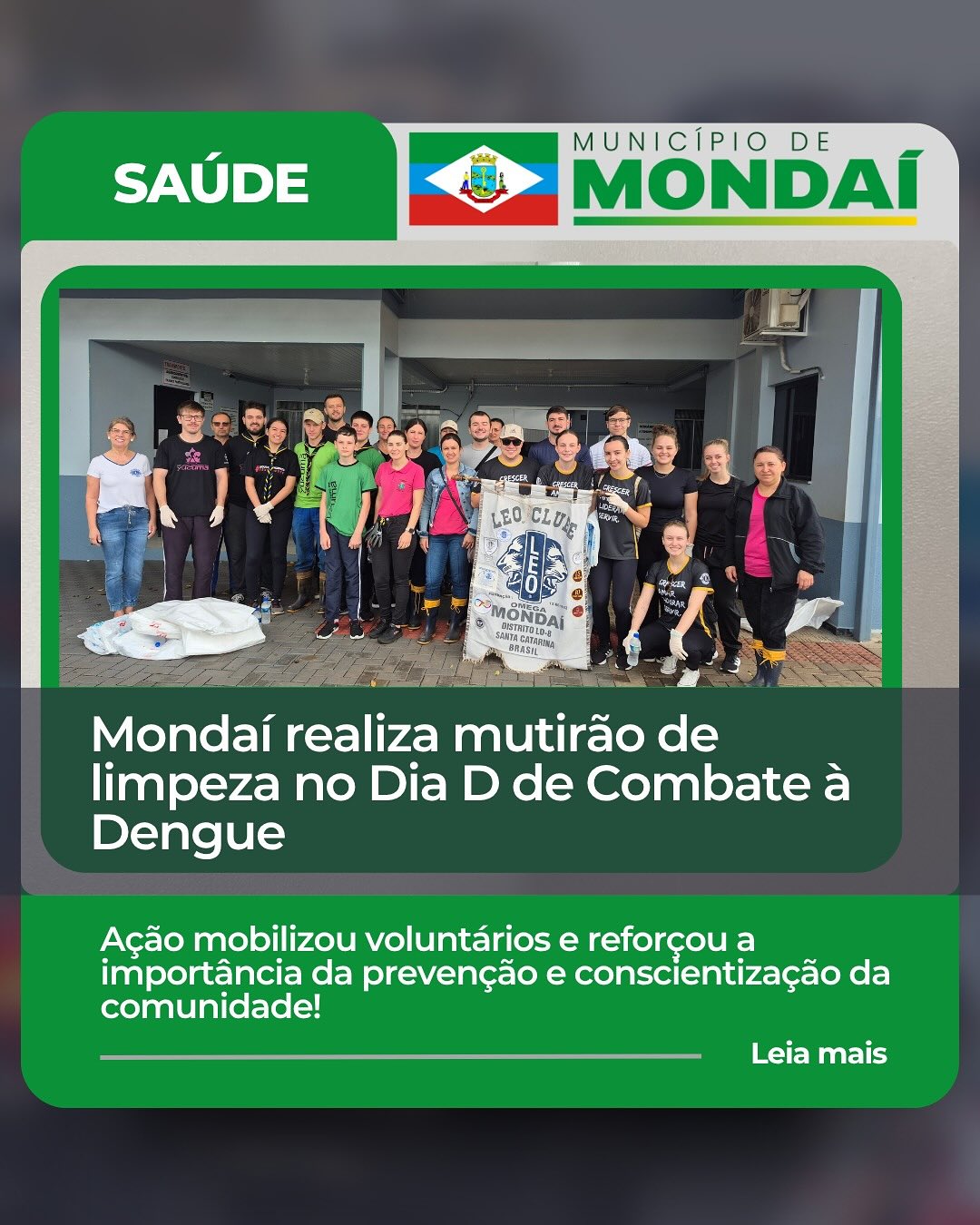 A ação contou com o apoio dos Escoteiros, Leo Clube e Lions Clube, além do setor de Epidemiologia da Saúde, que uniram esforços para recolher resíduos e orientar os moradores sobre práticas de prevenção. As atividades ocorreram em ruas dos bairros Capivara e Antas, resultando na coleta de grande volume de materiais que poderiam servir de criadouros para o mosquito transmissor.