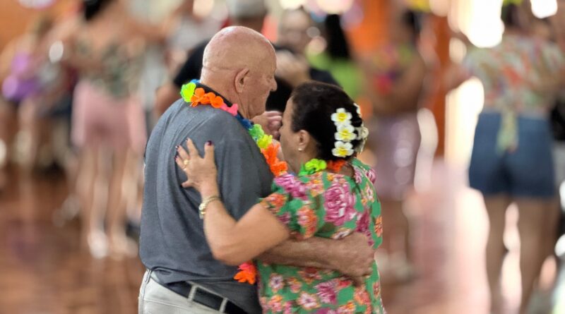 O evento teve início às 14h e reuniu cidadãos da terceira idade em uma celebração festiva com música, fantasias e atividades de integração