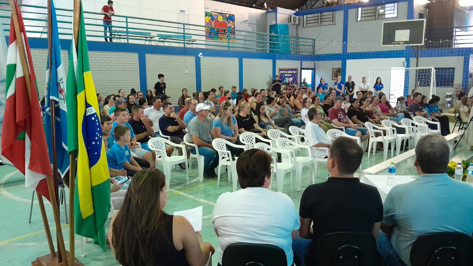 A Secretaria Municipal de Educação, Cultura e Esportes realizou, na manhã de segunda-feira (9), um ato oficial no Núcleo Educacional Municipal Aluíno Knapp, na Linha Diamantina, em Palmitos. O evento marcou o início do funcionamento do período integral na unidade, retomado após mais de dez anos, além da entrega de melhorias estruturais e materiais pedagógicos.