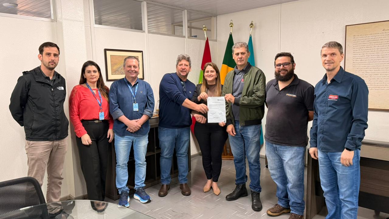 Em um ato que marca um importante investimento na infraestrutura e no desenvolvimento econômico local, a Prefeita de Palmitos, Giovana Giacomolli, assinou hoje, 17 de outubro de 2025, a Autorização de Início de Obra para a execução de melhorias no trevo de acesso ao Frigorífico Montebello. O ato de assinatura da Ordem de Serviço contou com a presença de diversas autoridades, incluindo o Vice-Prefeito Itamar Fiorese, secretários municipais, representantes do Frigorífico Montebello e da empresa vencedora da licitação, a Planaterra Terraplanagem e Pavimentação LTDA.