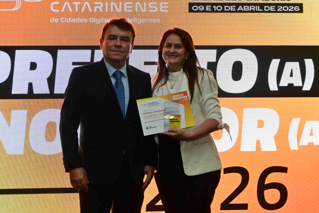 Entre os líderes municipais de maior destaque, a prefeita de Palmitos, Giovana Giacomolli, foi protagonista ao receber o prestigiado título de Prefeita Inovadora 2026 durante o 9º Congresso Catarinense de Cidades Digitais e Inteligentes.