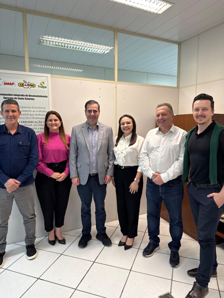 A comitiva também visitou o comando da EPAGRI, onde se reuniu com o presidente Dirceu Leite e a responsável pelo EPAGRI Ensino, Andréia Meira. A pauta incluiu a apresentação do potencial agrícola de Palmitos, a discussão sobre a criação de uma Casa Familiar Rural, a solicitação de mais profissionais para o corpo técnico da EPAGRI em Palmitos, e a proposta de instalação de uma estação meteorológica da CIRAM.