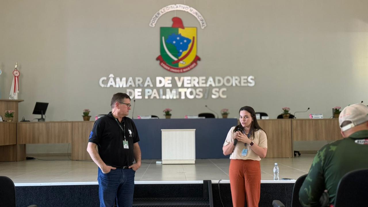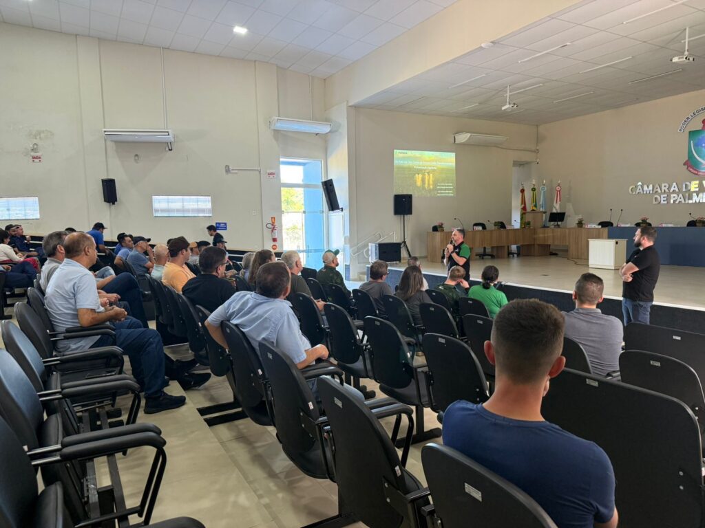 O evento foi realizado na Câmara de Vereadores de Palmitos, e reuniu produtores para debater dois temas pertinentes ao avanço tecnológico na pulverição agrícola.