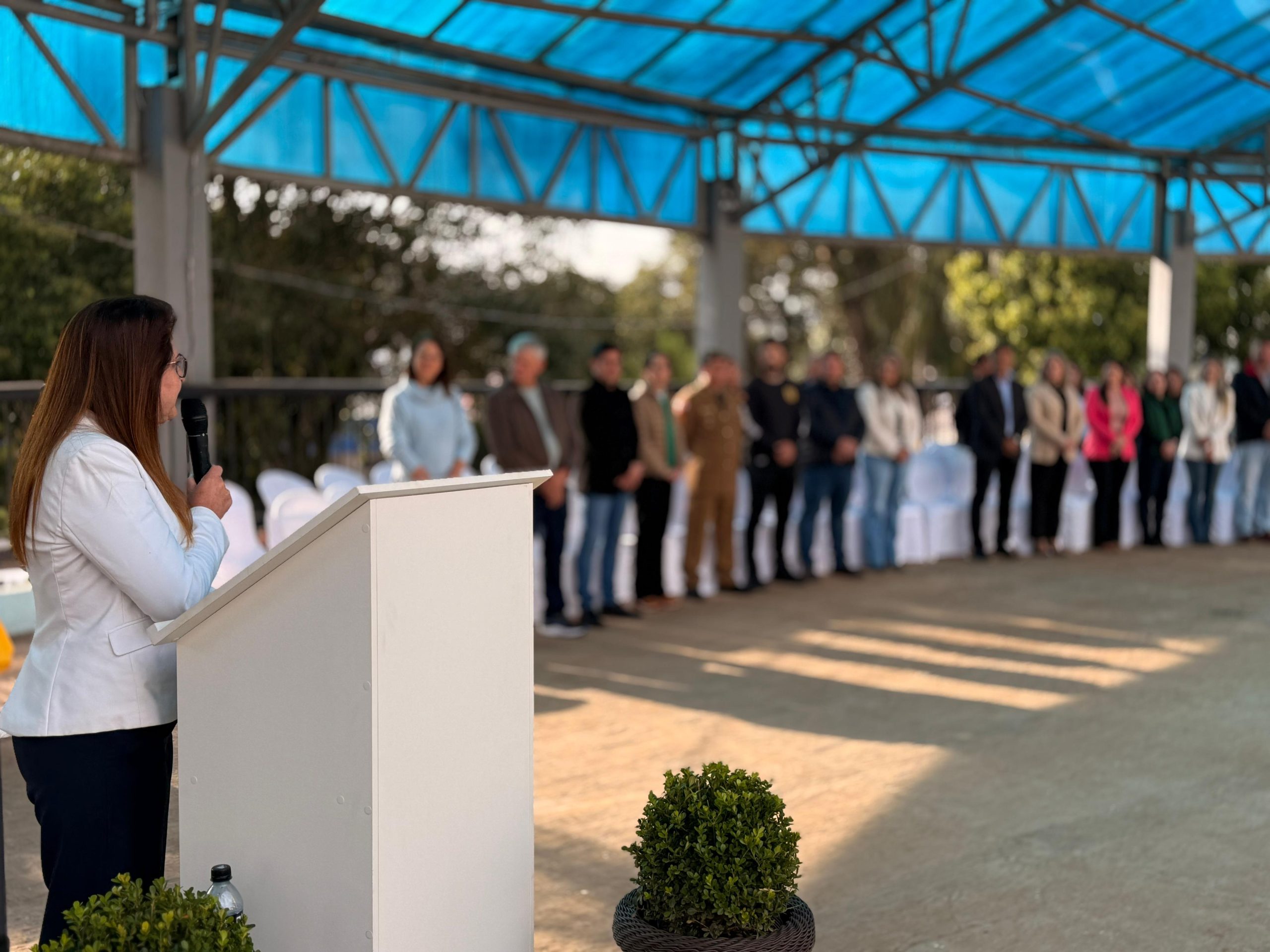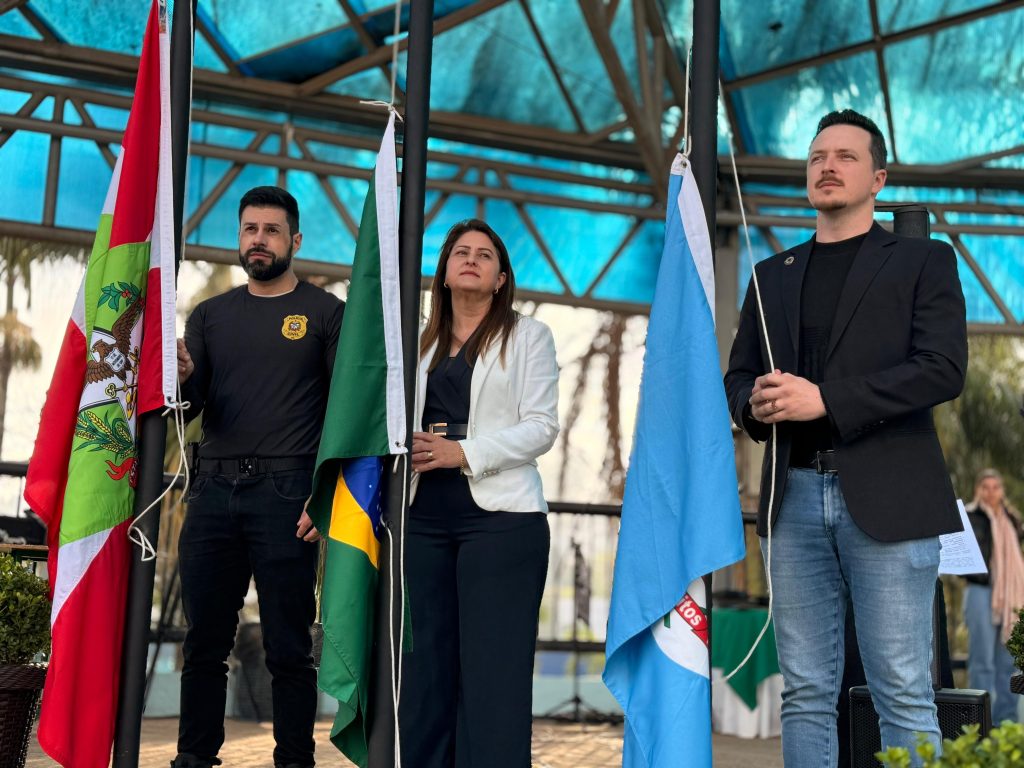 Dando sequência ao protocolo, pronunciaram-se a prefeita, o delegado, a secretária de educação Marli Camargo e o presidente da câmara de vereadores, destacando a importância de celebrarmos essa data e mantermos o orgulho de nossa história.