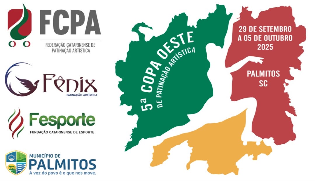 Palmitos sediará de 29 de setembro a 5 de outubro a 5ª Copa Oeste de Patinação Artística, reunindo mais de 1.000 atletas de 42 clubes de Santa Catarina, Rio Grande do Sul e Paraná. O evento acontecerá no Ginásio Municipal Sigisfredo Norberto Resener, com entrada gratuita.