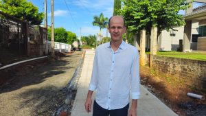 A Rua Servidão João Benno Arenhardt, em São Carlos, está recebendo pavimentação em concreto, obra acompanhada de perto pelo prefeito Delton Balbinot, que falou sobre o investimento e a importância da intervenção em entrevista à TV Expresso. O trecho passa a contar com um novo modelo de pavimentação, adotado como alternativa ao asfalto tradicional.