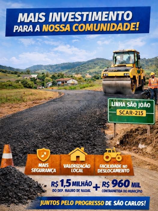 O município de São Carlos firmou contrato para a execução da obra de pavimentação asfáltica em trecho da SCAR-215, na Linha São João.