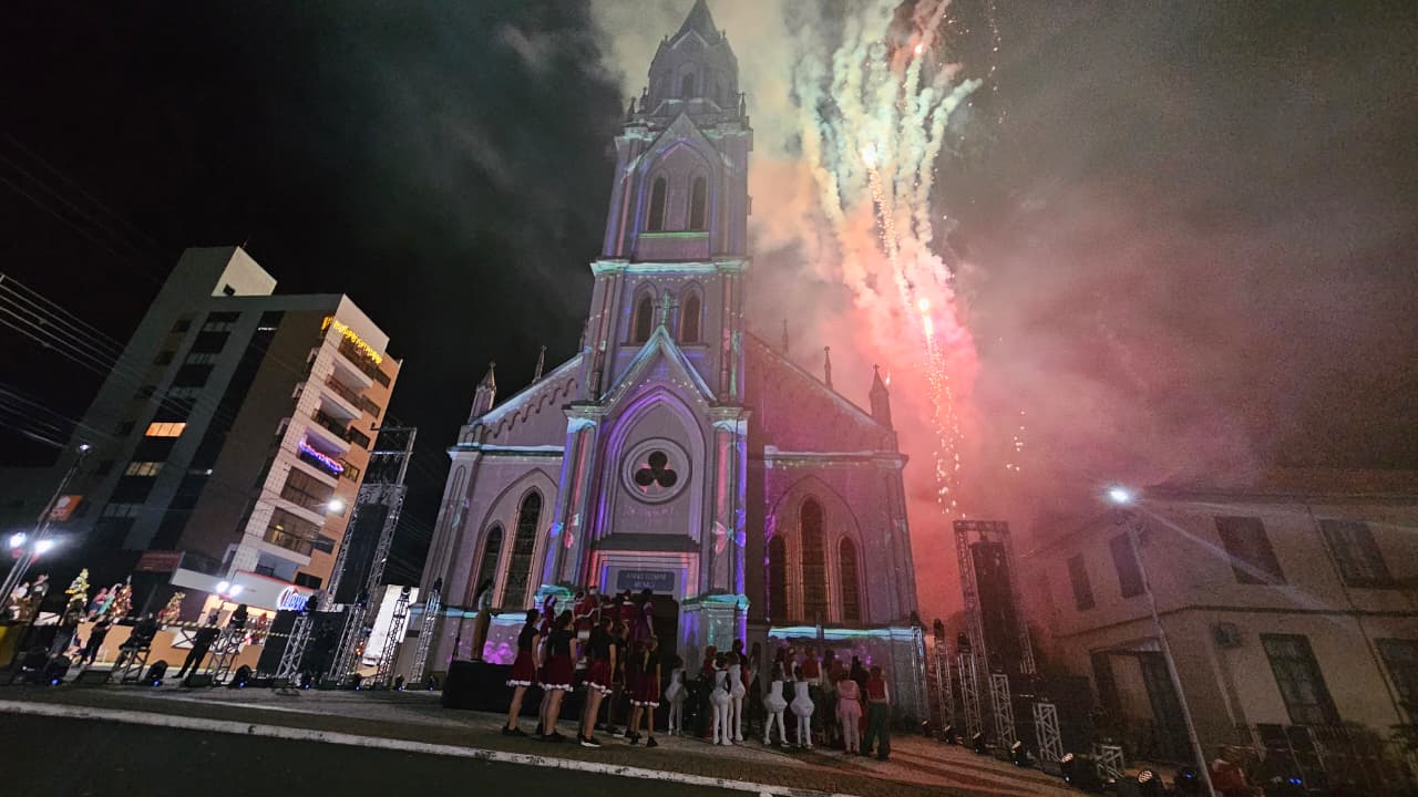 A grande atração da noite foi a segunda edição da projeção mapeada na fachada da Igreja Matriz, que encerrou o evento com um espetáculo visua. Imagens coloridas, símbolos do Natal e elementos artísticos ganharam vida nas paredes da igreja, emocionando o público presente.